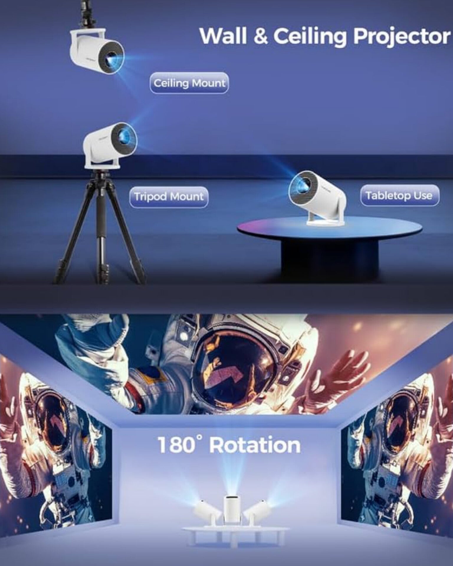 Portable Mini Projector, 4000 Lumens, 4K 1080P Full HD Support, WiFi 5G BT 5.0 Video Projector, Cinema Projector 180° Can Be Rotated, Android 12.0, Compatible with TV